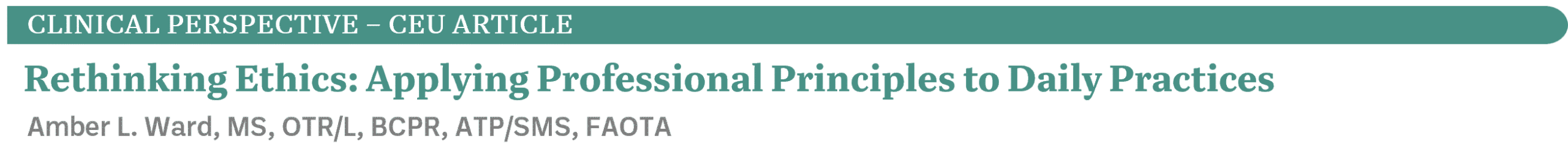 | AOTA Ethics | APTA Ethics | RESNA Ethics | iNRRTS Ethics |
