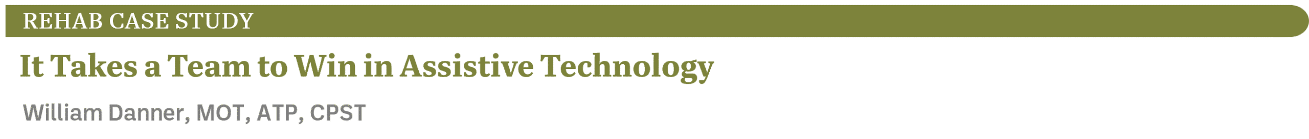William Danner, MOT, ATP, CPST, has been an occupational therapist for over 20 years. He currently works at the Aaron W. Perlman Center at Cincinnati Children’s Hospital, which specializes in assistive technology.
