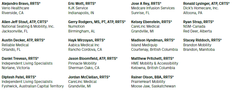 A CRTS® receives a lapel pin signifying CRTS® or Certified Rehabilitation Technology Supplier® status and guidelines about the correct use of the designation. The names listed are from December 1, 2025, through February 6, 2026.
