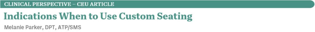 Indications for when to use custom seating to promote function and reduce progression of asymmetry, pressure injury risk, and pain